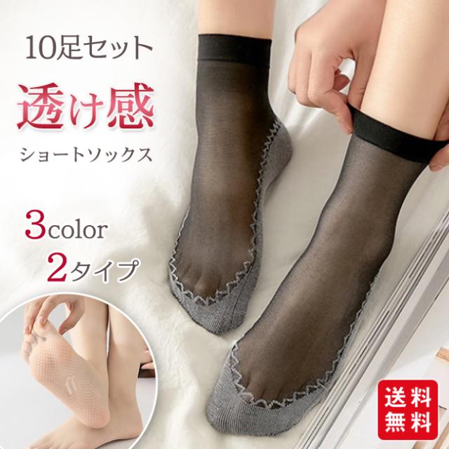 春新作 シースルーソックス レディース 10足セット 2タイプ ショートソックス レース 透け感 靴下 ストッキング 滑り止め 素足感覚 薄手 蒸れない ストレッチ ポイント消化 母の日