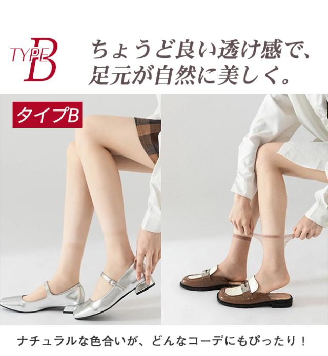 薄手でフィット感のある履き心地なので、パンプスやサンダルにおすすめ。