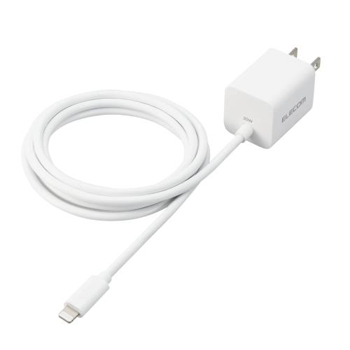 エレコム iPhone 充電器 USB PD対応 20W ライトニングケーブル一体型 1.5m 小型 コンパクト 折りたたみ式プラグ採用 iPhone/AirPods/iPod/iPad(Lightning端子) 各種対応 ホワイト MPA-ACLP05WH