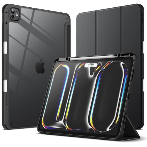 JEDirect iPad Pro 13インチ M4(2024)用 ケース Pencilホルダー付き 透明バックカバー スリムスタンド 衝撃吸収 タブレットカバー オートウェイク/スリープ機能 (ブラック)