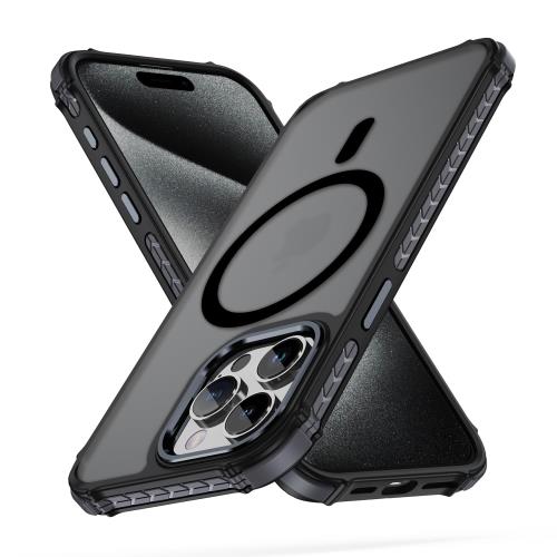 iPhone 15 pro ケース iphone ケース iPhone 15 pro ケース スマホカバー マット半透明 マグネット搭載 ワイヤレス充電 耐衝撃 指紋防止 滑り止め 米軍MIL規格・Magsafe対応 アイフォン15 pro 用カバー インチ PinLiSheng (グレイブラック, iphone 15 pro)