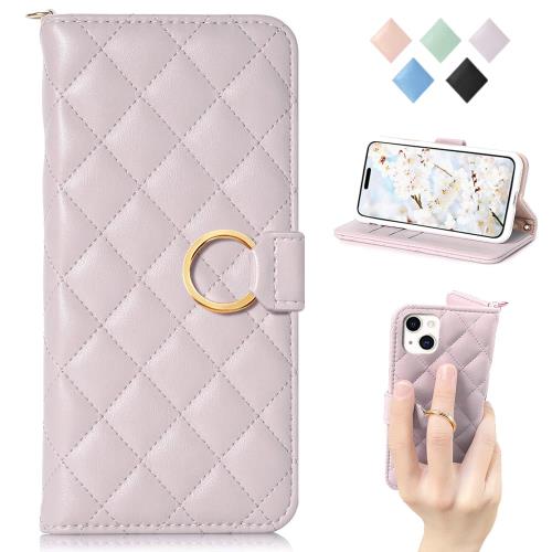 MAGICASE For iPhone15 ケース 手帳型 人気 アイフォン 15ケース 手帳型 スマホケースiphone15 チェック柄 刺繍 あいふぉん15 手帳カバー カード収納 スタンド機能 アイフォン15 保護ケース リング付き おしゃれ可愛い 財布型レディース 女性 美しい アイホン15 手帳型 携帯ケース かわいい 落ち着いた色 (iPhone15, 6.1inch対応)パープル