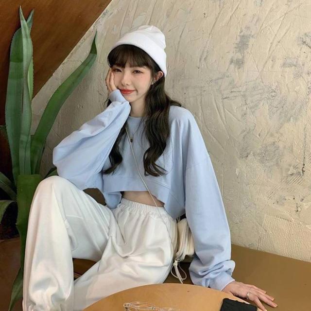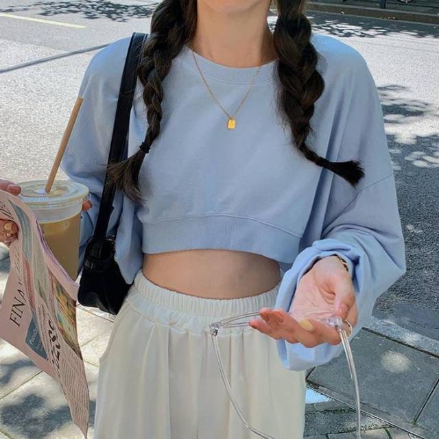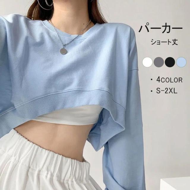 パーカー ミニ丈パーカー 長袖 Tシャツ レディース へそ出し ショート丈 スウェット トップス クロップド ダンス 衣装 韓国 練習着 ヒップホップ プルオーバー 長袖 女の子 ジム フィットネス ズンバ ウェア ルームウェア 韓国 k-pop かわいい 大きい ファッション 無地 おしゃれ ブルー ホワイト ブラック グレー nn002zbzbx7 nn002zb