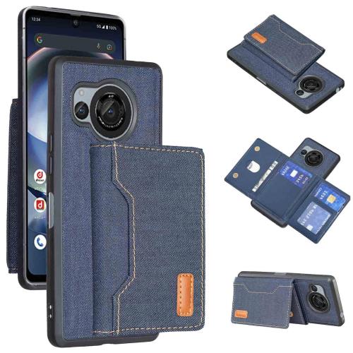 AnrekSHARP AQUOS R8 / docomo SH-52D 用 デニムケース カード収納 縄掛 手帳型 ケース(ダークブルー)ドコモsh52d アクオス アールエイト アクオスr8 背面カバー 両用 磁石吸着 名刺入れ 分離式 取り外し自由 車載 耐衝撃 財布合一 ケース シャープr8 BLUE