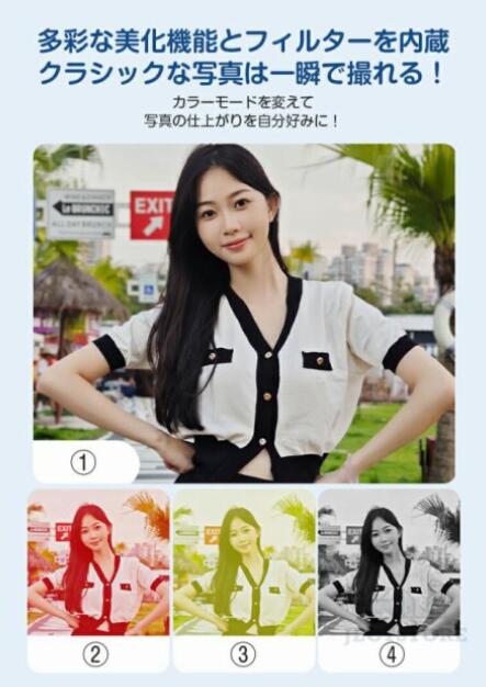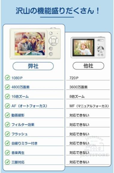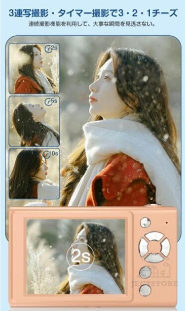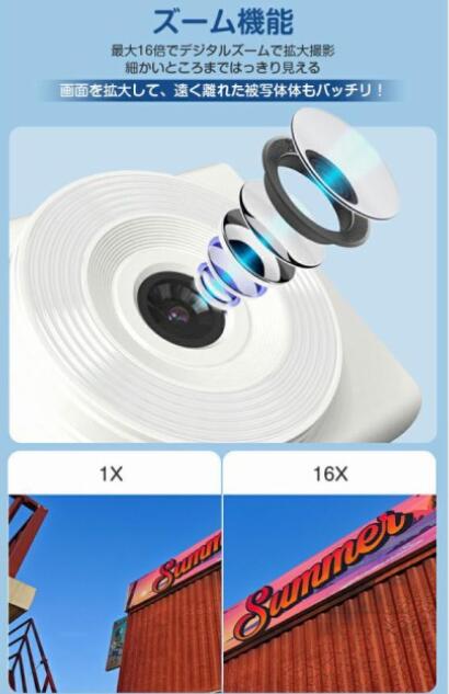 3連写撮影、音楽再生、フラッシュ搭載、タイマー撮影、4つ知育ゲーム内蔵、5種類のカレンダーから選択可能など豊富な機能が持っているカメラです。また、多種類のフィルターを搭載しています。お花見、新年、クリスマス、誕生日、家族写真、運動会、入学・卒業式、忘年会、旅行など様々な場面大活躍!