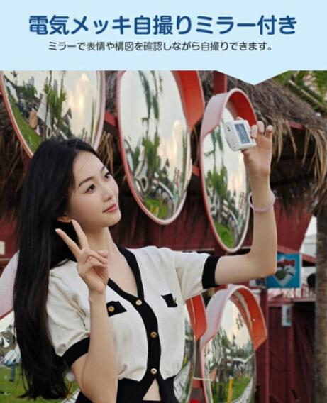 2.8インチ高精細ディスプレイが搭載し、撮影した映像を確認する際にも便利です。なお、電気メッキ自撮りミラー付きで表情や構図を確認しながら自撮りできます。