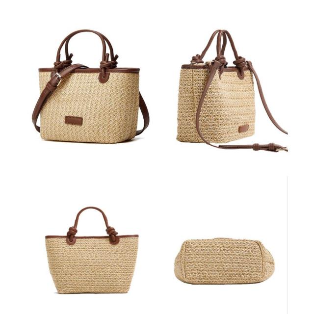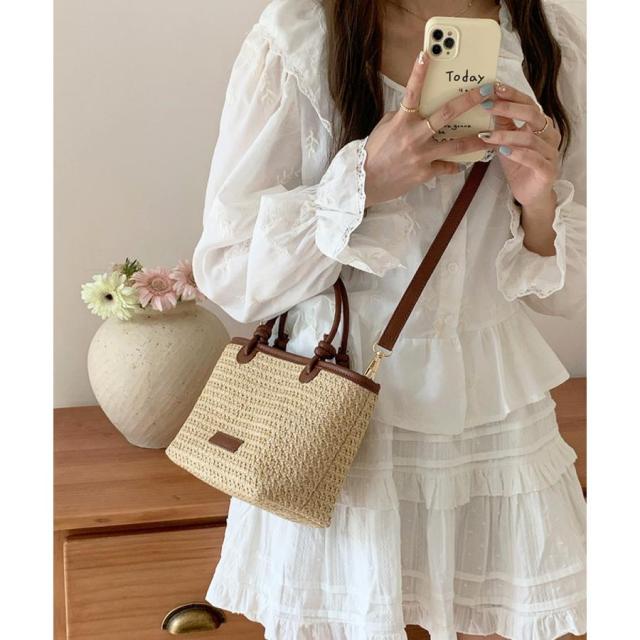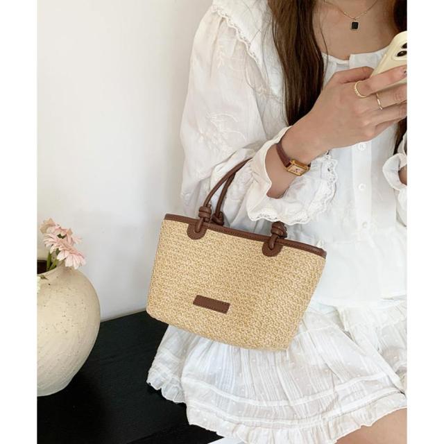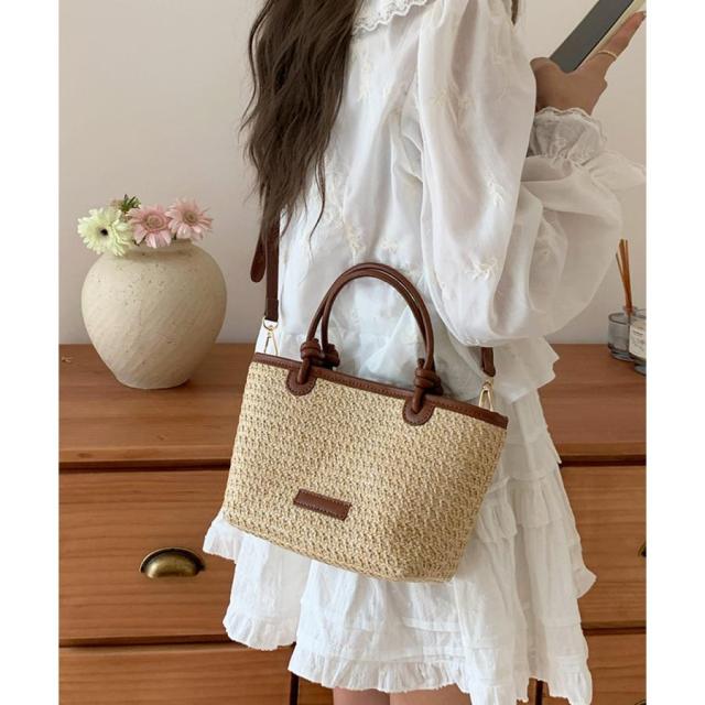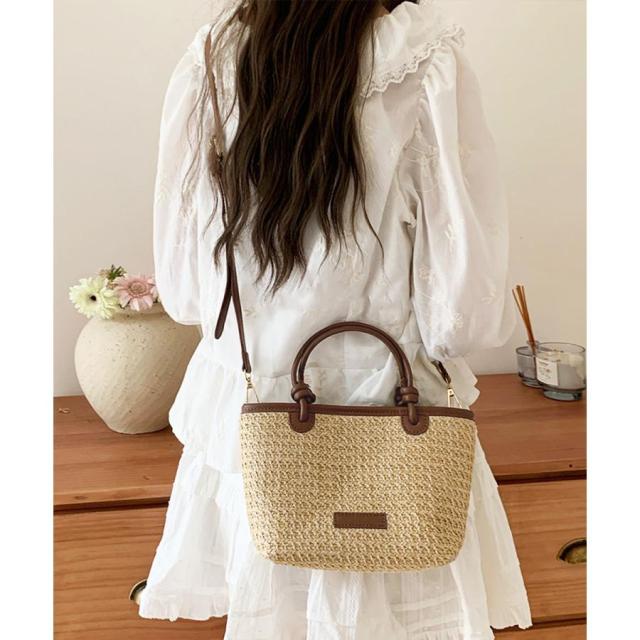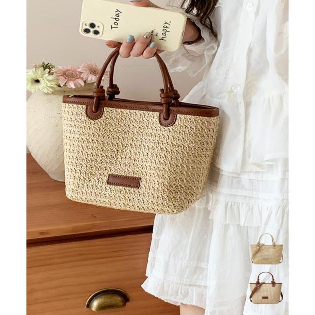 ストローバッグ レディース 可愛い 2WAY 編みバッグ 花火大会手提げバッグ 斜めがけ 麦わら鞄 夏祭り 肩掛けバッグ