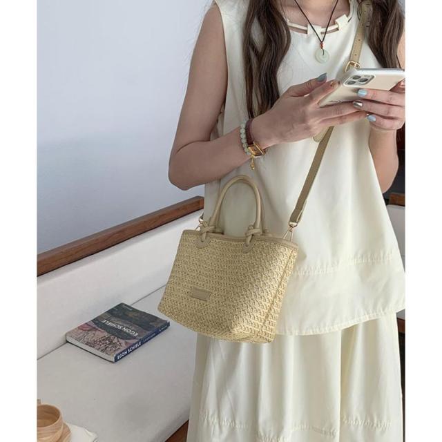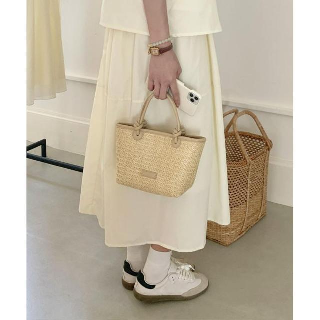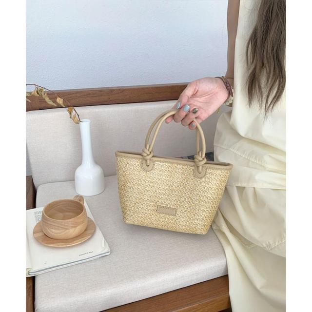 ナチュラルな雰囲気に、フェイクレザーのハンドルが洗練された印象をプラス