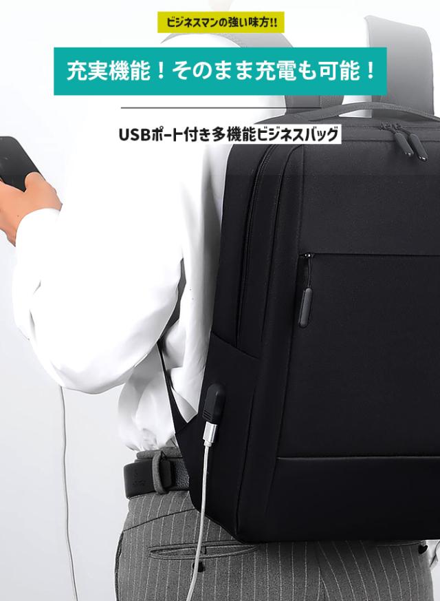 バックパック ビジネスリュック メンズ 大容量 クッション性 通気性 USBポート付き充電可能