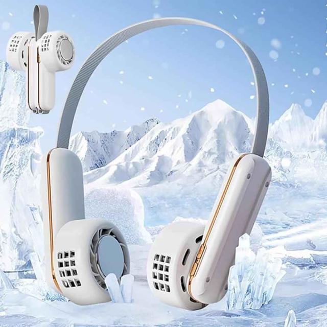 冷却プレート 扇風機 ネッククーラー 携帯扇風機 首掛け扇風機 折りたたみ式 ヒヤクール( White) 父の日 ギフト