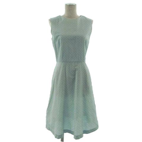 【中古】ズッカ zucca ワンピース ノースリーブ ミディ丈 コットン混 ドット グリーン系 緑系 ブルー系 青系 M