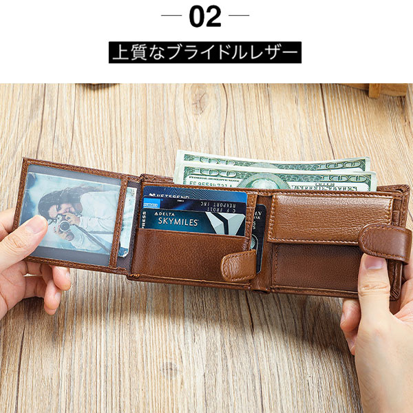 財布 メンズ 二つ折り 本革 小銭入れ コインケース マリンレザー カードケース 横型 多機能 薄型 コンパクト ボックス型 紳士用 40代 50代