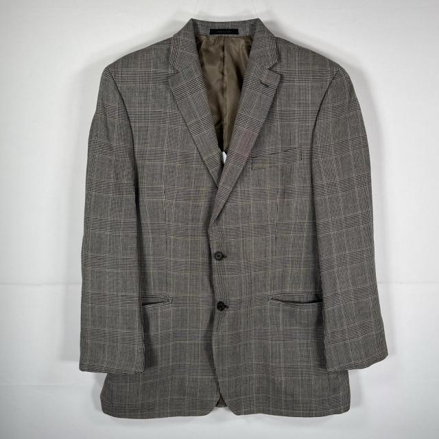 古着 ラルフローレン RALPH LAUREN テーラードジャケット ブレザー シルク ウール スーツ 大きいサイズ 44 ブラウン系 チェック メンズ