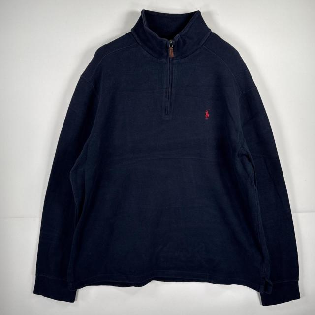 古着 ポロバイラルフローレン Polo by Ralph Lauren 長袖 セーター ワンポイント ハーフジップ トレーナー ネイビー 無地 メンズ