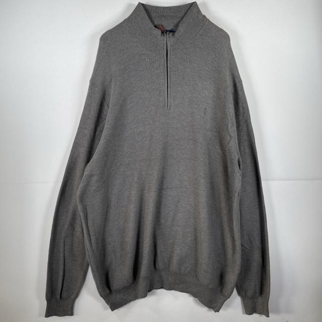 古着 ポロ・ラルフローレン POLO RALPH LAUREN 長袖 ニット ハーフジップ トレーナー セーター 大きいサイズ 4XLT グレー 無地 メンズ