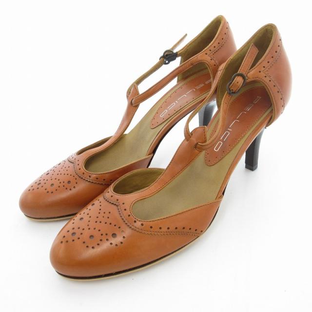 【中古】ペリーコ PELLICO Tストラップパンプス 本革 レザー ウイングチップ 37.5 茶 ブラウン /UO レディース
