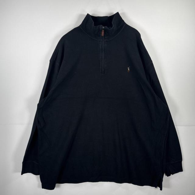 USA古着 ポロ ラルフローレン RALPH LAUREN ニット ハーフジップ トレーナー セーター 大きいサイズ ワンポイント 3XB ブラック 無地