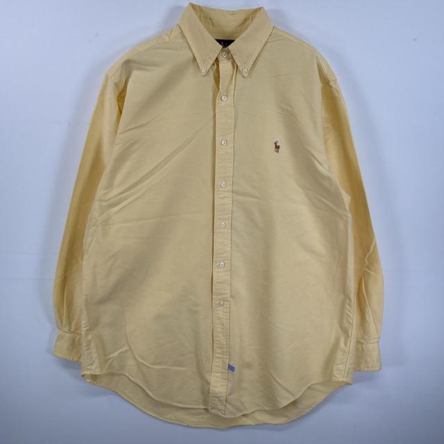 古着 ラルフローレン RALPH LAUREN 長袖シャツ ボタンダウンシャツ ワンポイント 大きいサイズ 刺繍 16 L-XL イエロー 無地 メンズ