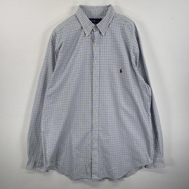 古着 ラルフローレン RALPH LAUREN 長袖シャツ ボタンダウンシャツ ワンポイント 刺繍 大きいサイズ XLT ホワイト チェック メンズ