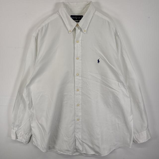 古着 ラルフローレン RALPH LAUREN 長袖シャツ ボタンダウンシャツ ワンポイント ロゴ 刺繍 大きいサイズ 18 2XL ホワイト 無地 メンズ