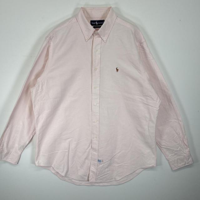 古着 ラルフローレン RALPH LAUREN 長袖シャツ ボタンダウンシャツ ワンポイント ロゴ 刺繍 オックスフォードシャツ 17-36 XL ピンク