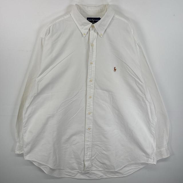 古着 ラルフローレン RALPH LAUREN 長袖シャツ ボタンダウンシャツ ワンポイント ロゴ 刺繍 大きいサイズ 18 2XL ホワイト 無地 メンズ