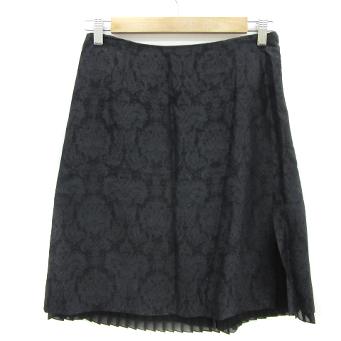 【中古】アルチザン ARTISAN 台形スカート ひざ丈 ダマスク柄 スリット 9 黒 ブラック /YS6 レディース