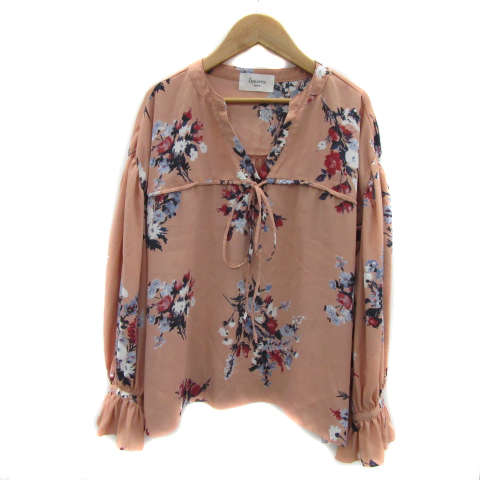 【中古】レピスリー ブラウス カットソー 長袖 花柄 リボン オーバーサイズ サーモンピンク レディース