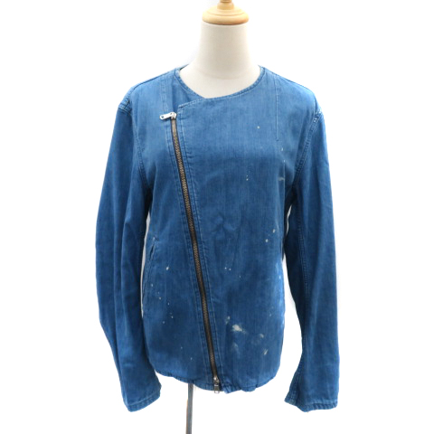 【中古】ユナイテッドアローズ ブルゾンジャケット ミドル丈 ノーカラー ペイント加工 L ライトブルー レディース