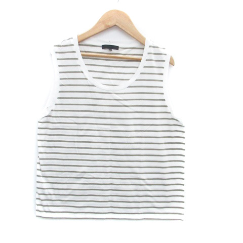 【中古】アイシービー iCB タンクトップ カットソー ラウンドネック ボーダー柄 L オフホワイト 茶色 ブラウン