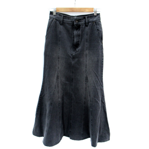 【中古】ガリャルダガランテ キュアノス Q.anos デニムスカート フレアスカート マキシ丈 ロング丈 1 黒 レディース