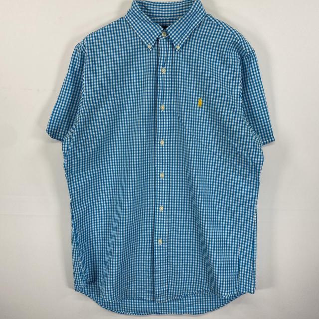 古着 ラルフローレン RALPH LAUREN シアサッカー 半袖シャツ ワンポイントロゴ刺繍 ギンガムチェック M ブルー系 チェック メンズ