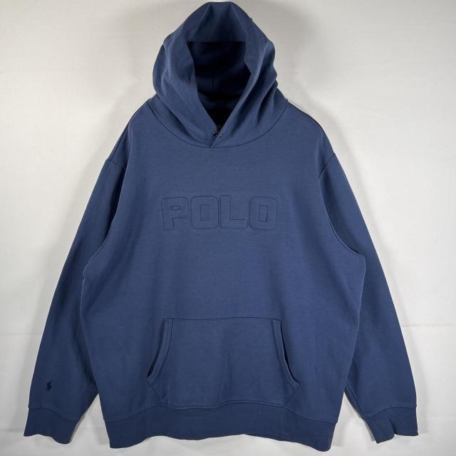 古着 ポロ・ラルフローレン POLO RALPH LAUREN パーカー 大きいサイズ 立体ロゴ ワンポイントロゴ刺繍 XXL ブルー系 メンズ