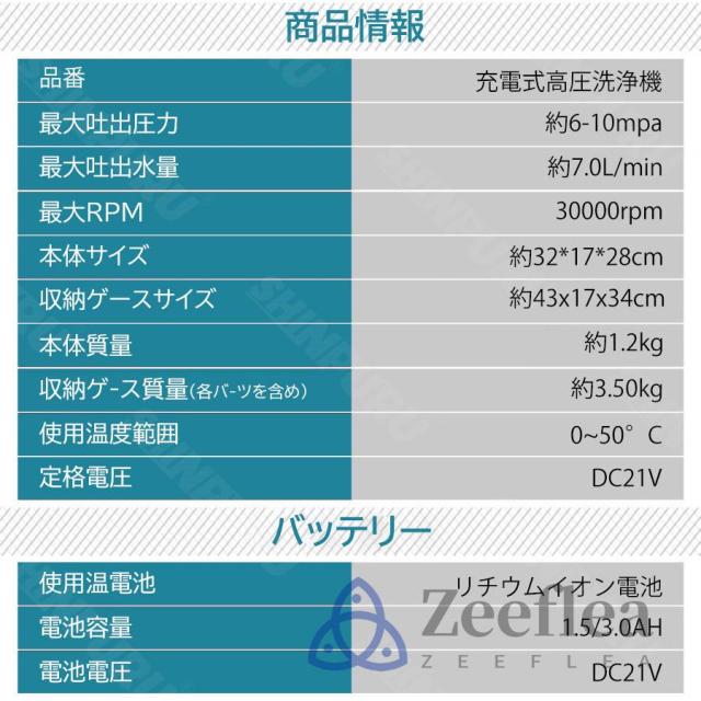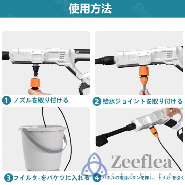 6-in1多機能ノズル、左右360°上下180°変換可能なノズルと洗剤ボトルノズル3種類ノズル付きで、様々な用途に活用できる。6-in-1スプレーヘッドを搭載し, ノズルを回すだけでスプレーパターンを調整で(0°/15°/25°/40°/シャワー/ストレート)、 物をきれいにしたり、植物に水をやったりするのに使用できます。バリアブルノズル付で直噴?拡散の調整ができます。付属の洗剤ポットへ洗剤を入れでノズルを合わせるだけ泡の吹き付け、草木への薬剤噴霧も可能。