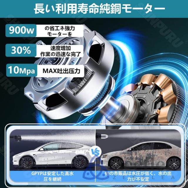 本製品は2026高圧洗浄機の最新モデルです。 十分なパワーの750W最上クラスのブラシレスモーターを搭載しているため、2段階水?モードを設計し、お客様の使用ニーズに合わせています。 水圧が高すぎて物を破損することや水圧が低すぎてきれいに洗浄できないなどの心配がないです。