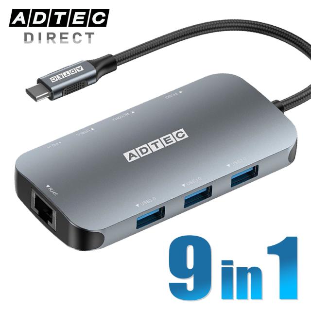 【USB-C HUB 9-in-1】PD100Wパススルー対応 4K映像出力(60Hz) USBハブ ドッキングステーション ノートPC拡張用 日本メーカー