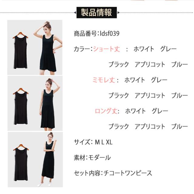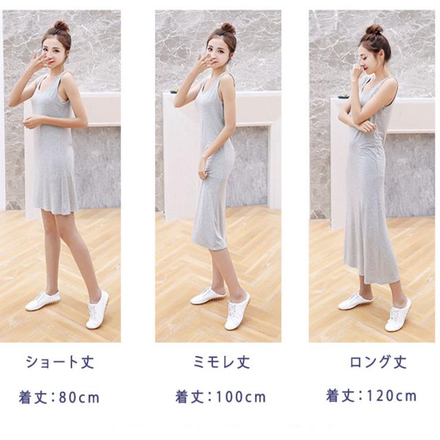 商品名 | タンクトップ インナー スリップ レディース ペチコート タンクワンピース インナーワンピース ノースリーブ 涼しい 夏 ロング ミモレ丈 ショート丈 ワンピース 透け防止 透けない ペチワンピース 下着 肌着 浴衣用インナー 体型カバー 薄手 |