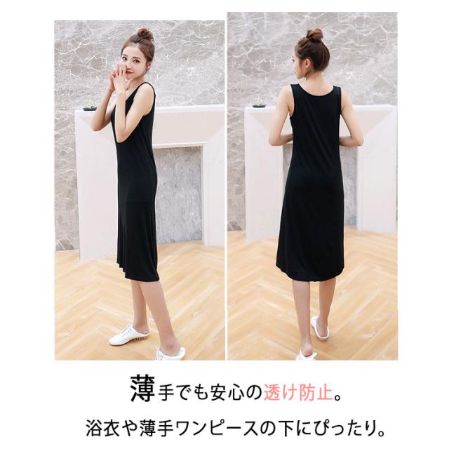 タンクトップ インナー スリップ レディース ペチコート タンクワンピース インナーワンピース ノースリーブ 涼しい 夏 ロング ミモレ丈 ショート丈 ワンピース 透け防止 透けない ペチワンピース 下着 肌着 浴衣用インナー 体型カバー 薄手