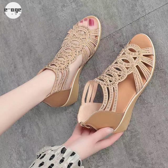 サンダル レディース ハイヒール ブーツサンダル 楽ちん グラディエーター 歩きやすい ローヒール 幅広 痛くない 夏 美脚 ウェッジソール キラキラサンダル