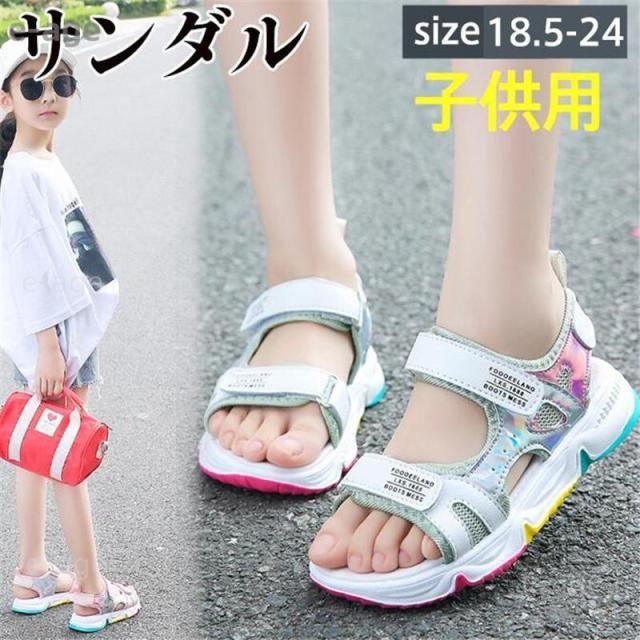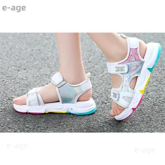 子供サンダル スポーツサンダル 女の子 キッズ ジュニア 子供 マジックテープ 歩きやすい サイズ調節可 厚底 姫系 女児 可愛い おしゃれ
