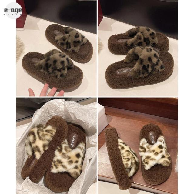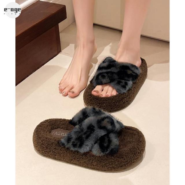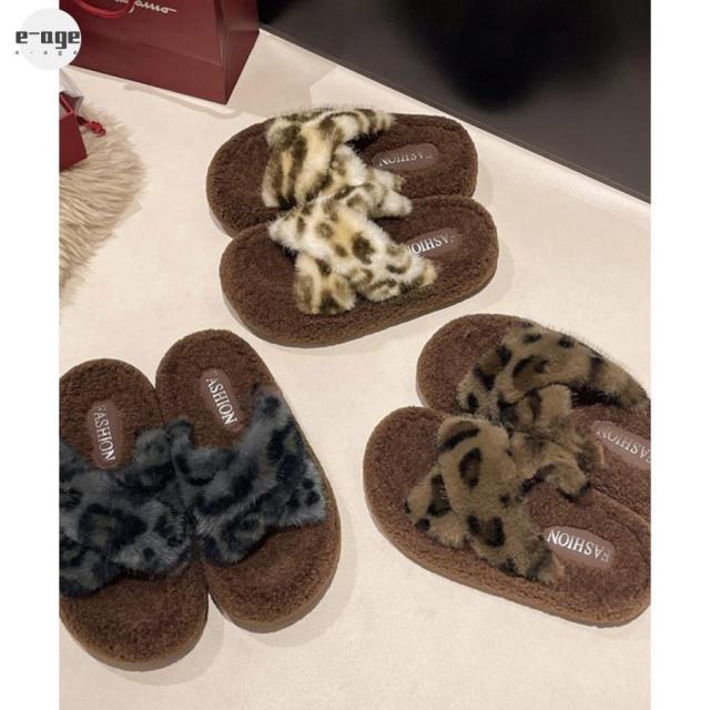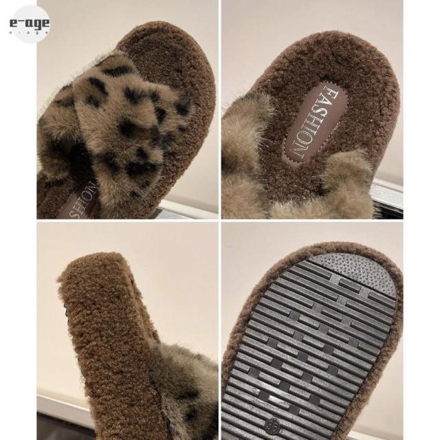 レオパードサンダルレディース もこもこあったかフラットシューズ 歩きやすい ふわふわ ルームシューズ 疲れない 寒さ対策