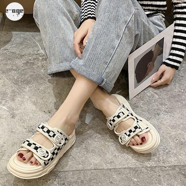 サンダル レディース おしゃれ 大きいサイズ ぺたんこ フラット 厚底 歩きやすい 厚底 ベルクロ スポーツ スポサン カジュアル おしゃれ シンプルヒール