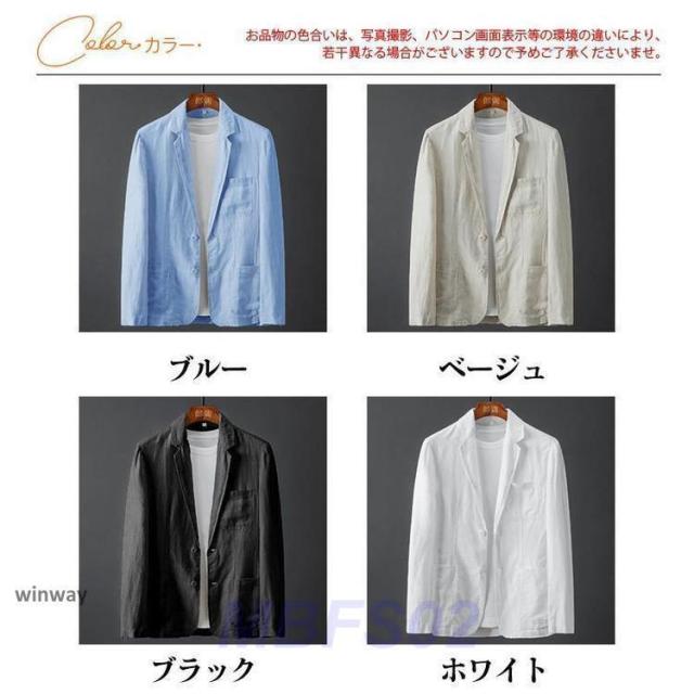 テーラード ジャケット メンズ 綿麻 リネン ストレッチ 黒 白 リネンジャケット 紳士用 アウター 通勤 新作 春 夏 無地 大きいサイズ 父の日