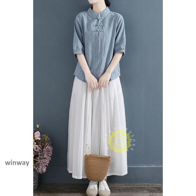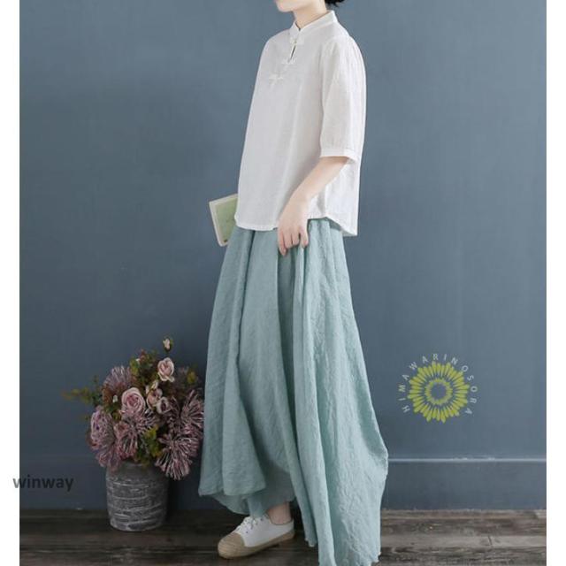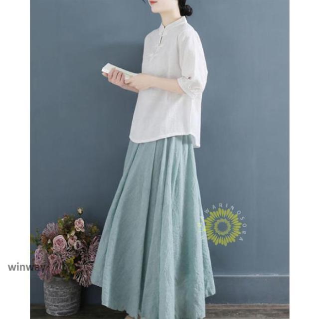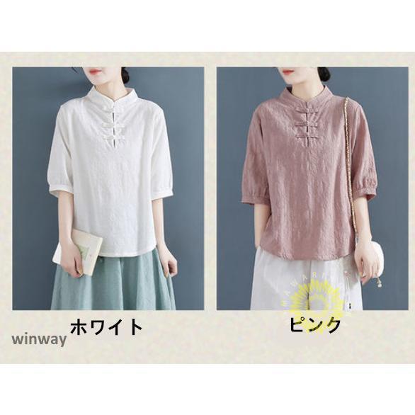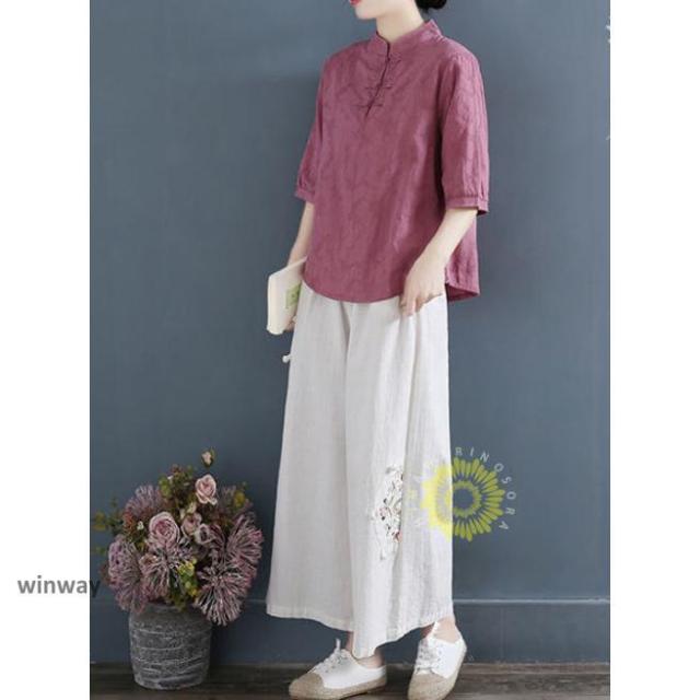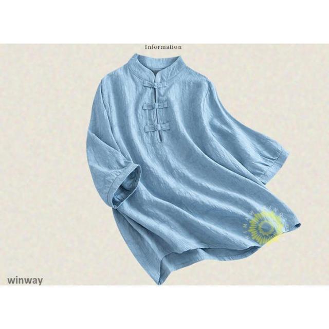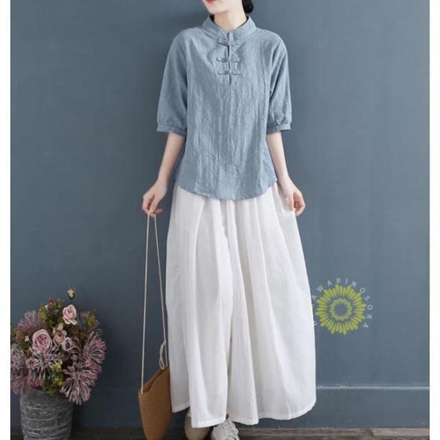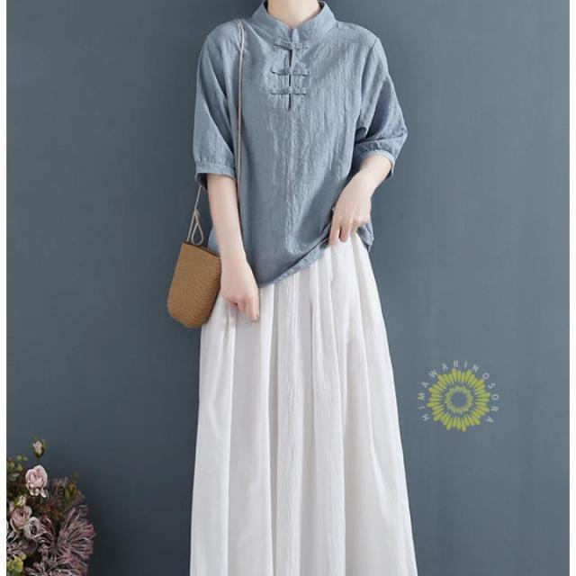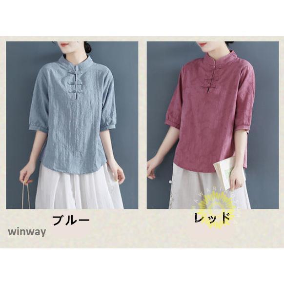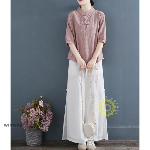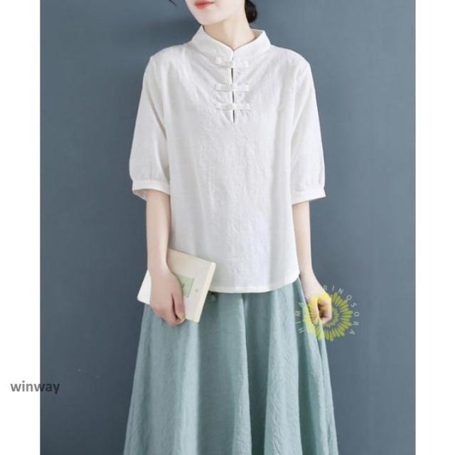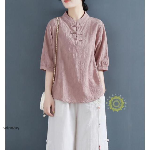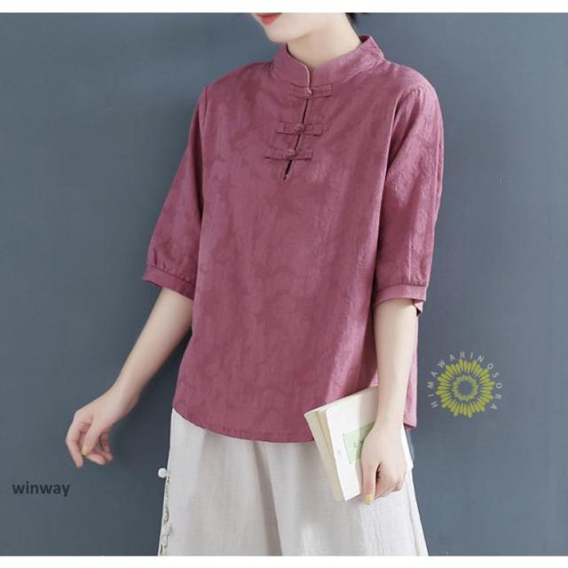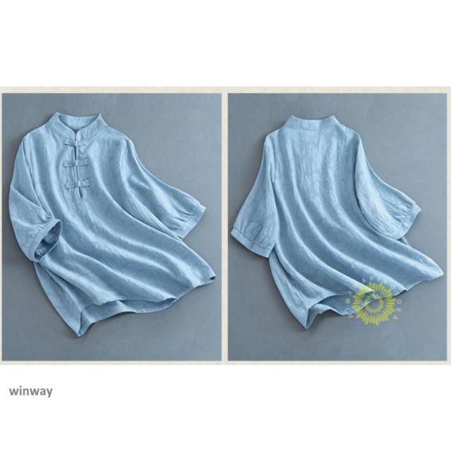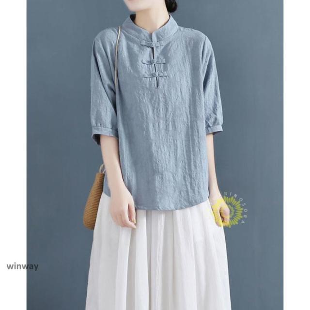 チャイナドレスシャツ 半袖ブラウス 6色 太極拳服 朝練 武術服 チャイナ リネン 春秋 レディース スリット 綿麻 中国