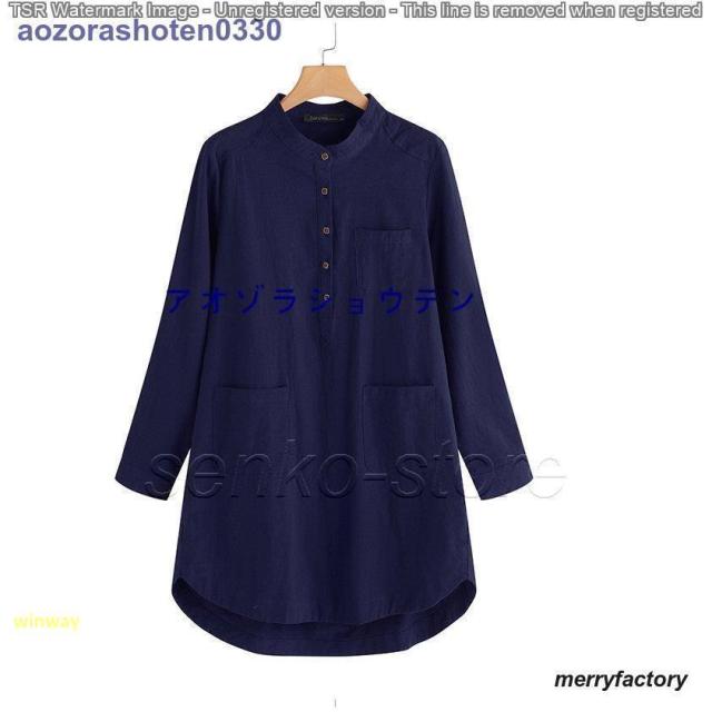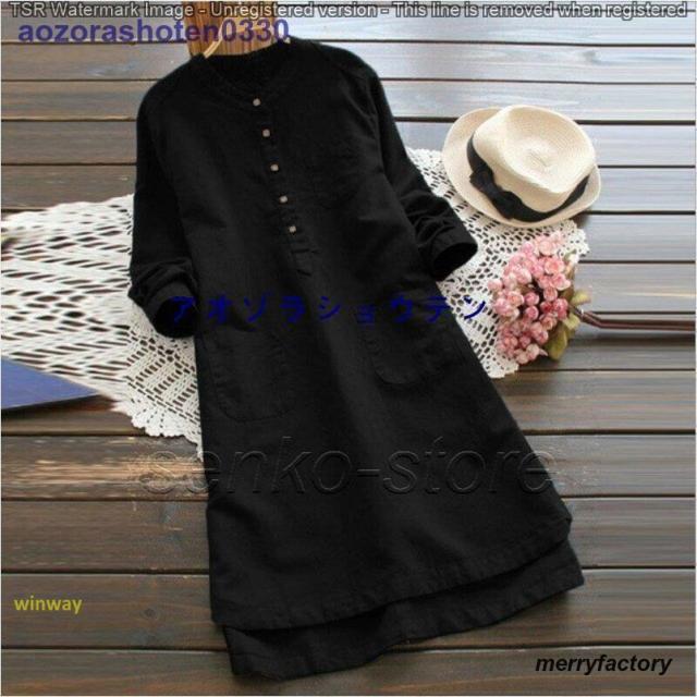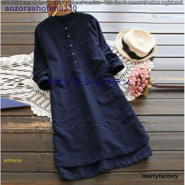 ワンピース レディース 春 夏 シャツ 無地 長袖 秋 レディース 膝丈ワンピース 綿麻混 リネン ポケット付き 大きいサイズ 体型カバー 着痩せ 40代 50代 秋