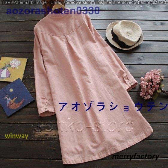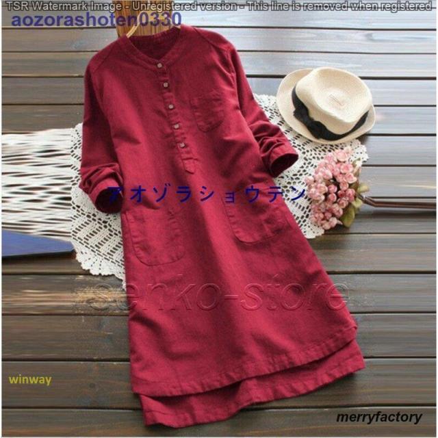 ワンピース 秋物レディース 春 シャツ 無地 長袖 秋 レディース 膝丈ワンピース 綿麻混 リネン ポケット付き 大きいサイズ 体型カバー 着痩せ 40代 50代