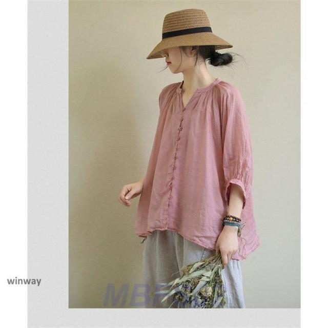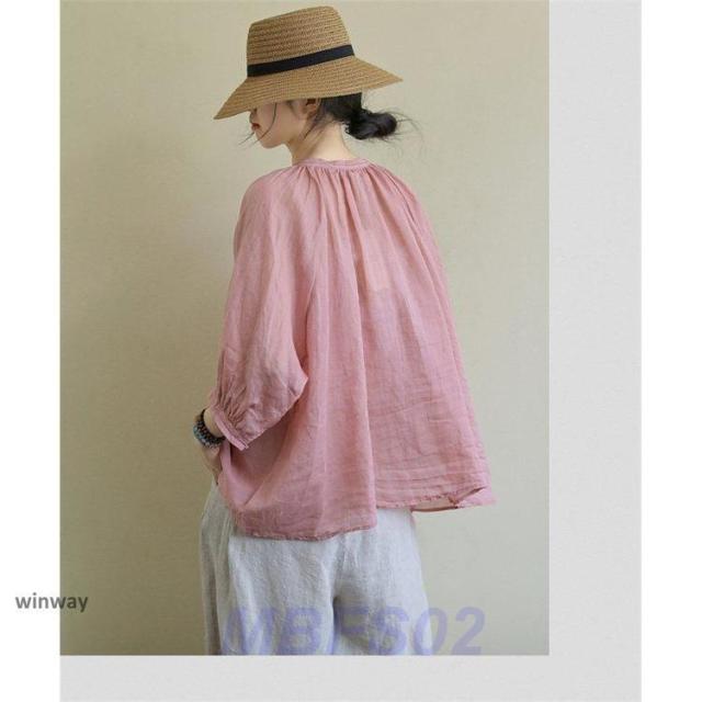 リネンシャツ シャツ レディース 春 ブラウス 長袖 綿麻混 プルオーバー シャツブラウス ロングシャツ 30代 40代 50代 夏 ゆったり 着心地 可愛い