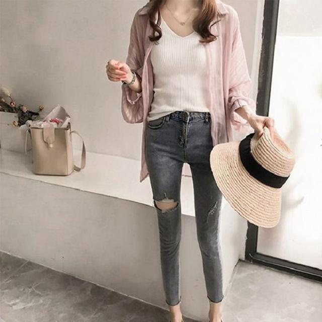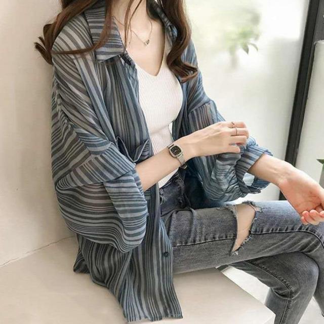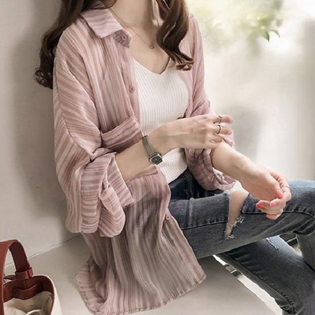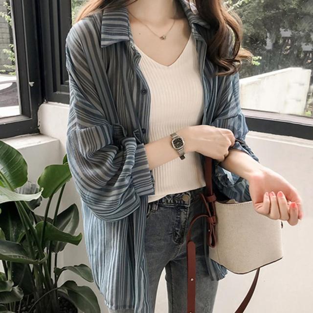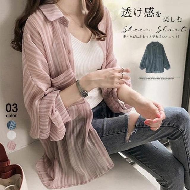 トレンドのシアー感を取り入れたストライプ柄のシアーシャツが新登場。