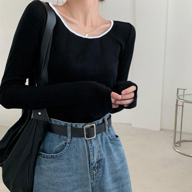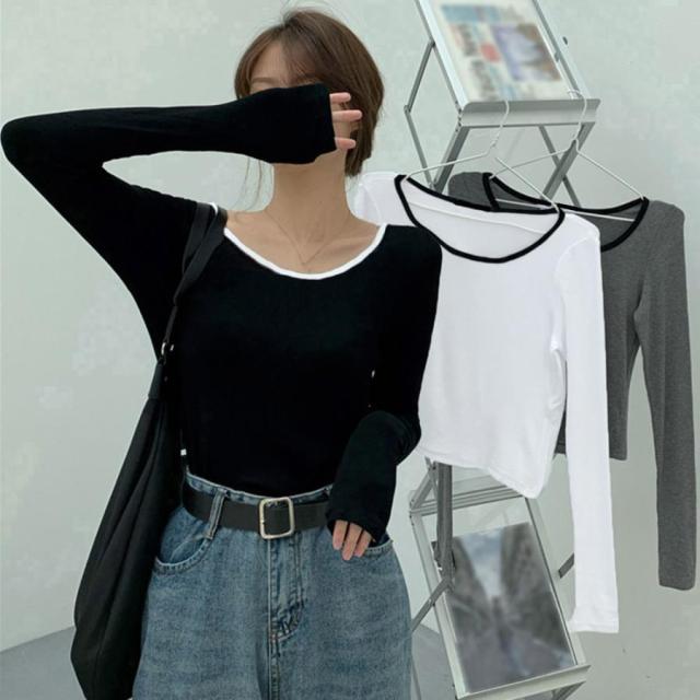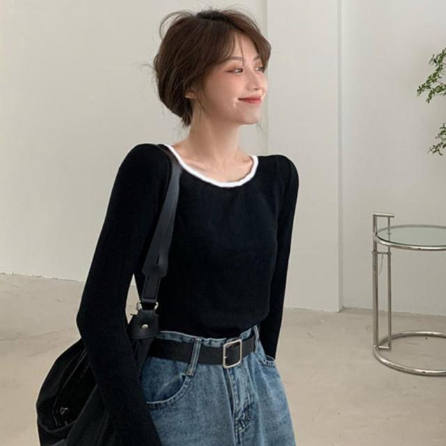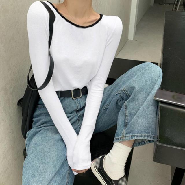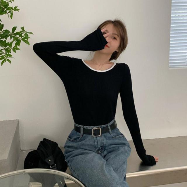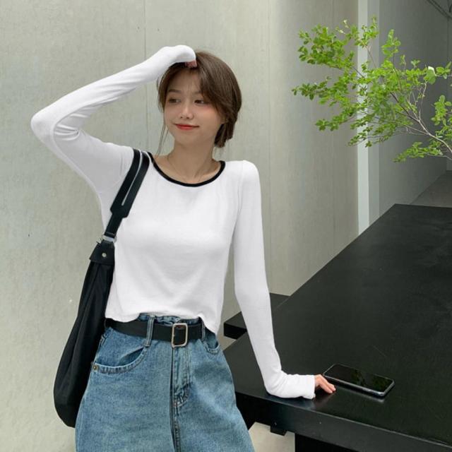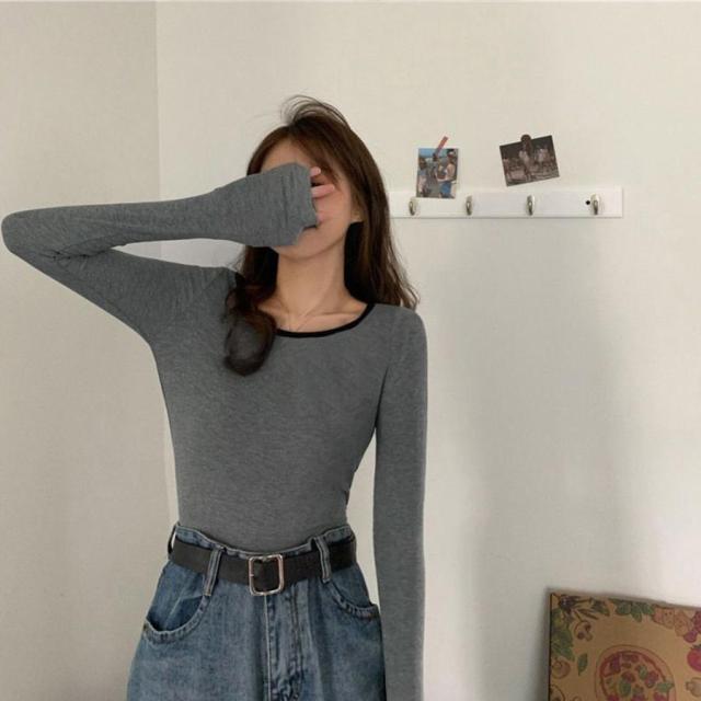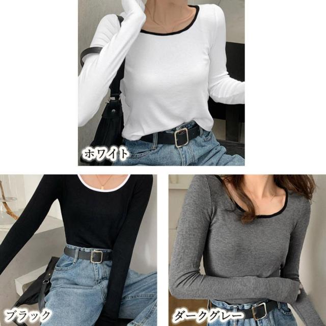 トップス シンプル カットソー 韓国風 クルーネック カジュアル 無地 春秋