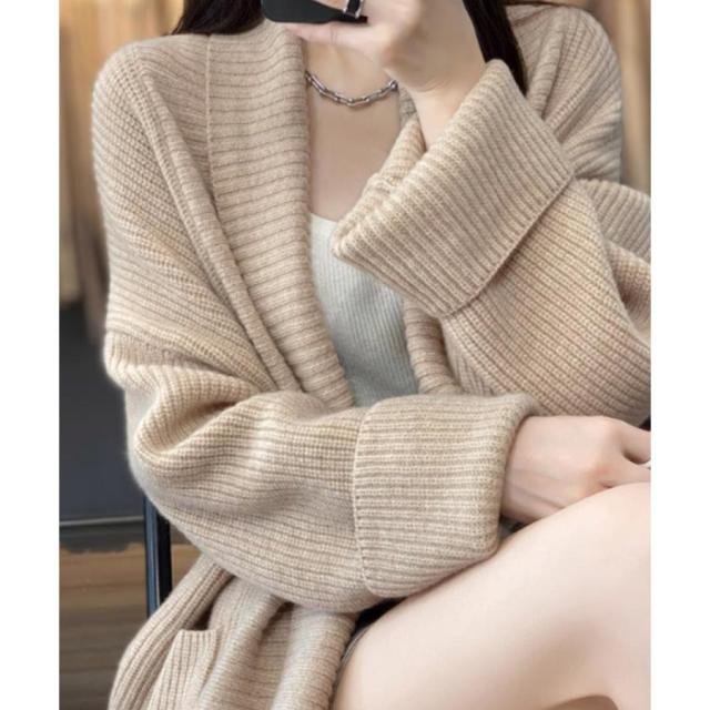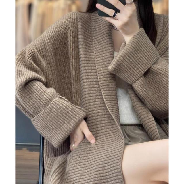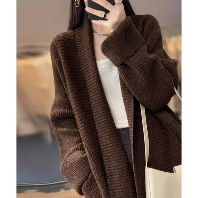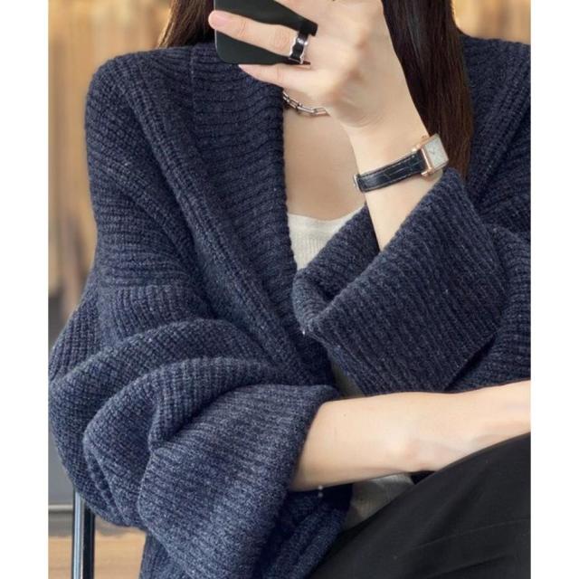 厚みのある柔らかニット生地で仕上げた、抜け感&こなれ感が溢れる韓国新作DESIGNののレディースカーディガン